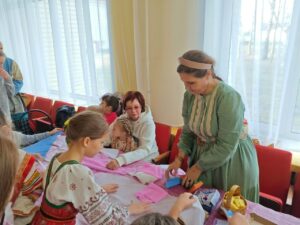 Участники мероприятия не только внимали рассказам, но и сами становились частью действа: закружились в весёлых хороводах и с увлечением творили, осваивая старинные ремесла на увлекательном мастер-классе.