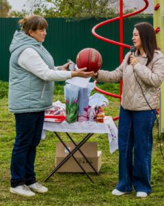 приёмка дополнительного спортивного оборудования на игровой площадке: установлена сетка для волейбола и пионербола. Также установлены скамейки, стол для настольных игр, освещение и видеокамера.