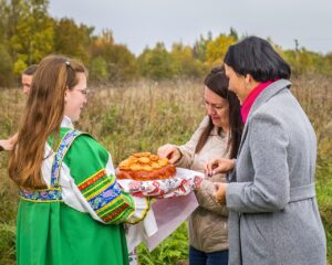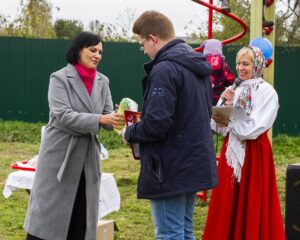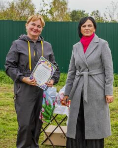 Первый заместитель главы Рыбинского муниципального округа Т.Ю. Кругликова и заместитель главы администрации Судоверфского с.п. Н.В. Васильева вручили грамоты и подарки активным жителям д. Малинники