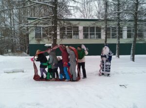 Участие приняло 5 команд, которые выполняли определенные задания на сказочных станциях. Главной задачей было получить «волшебный снежок» для того, чтобы помочь Деду Морозу спасти Снегурочку, которую похитил Леший.